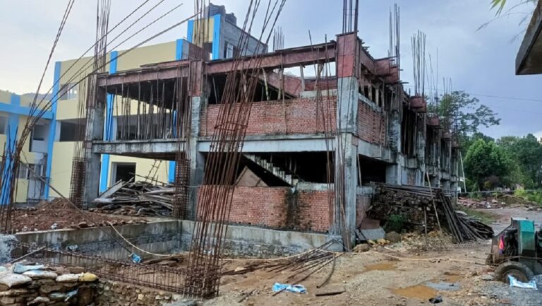 विसं २०७७ को असार–साउनदेखि भासिन सुरु गरेको भवनको ‘बिम’हरू राखेर बाँकी रहेको ठाउँमा अन्तिम केन्द्र यकिन नै गर्न नसकिने गरी भासिएपछि भवन थप जोखिममा रहन सक्ने जनाउँदै निर्माणको थप काम हुनसकेको छैन । भू–गर्वविद्हरूले भासिनुको कारण र समाधानका उपायसहितको अध्ययन प्रतिवेदन ल्याउने भनिए पनि अहिलेसम्म त्यो ‘रिपोर्ट’ नआउँदा भवनको काम बाँकी रहेको अस्पतालका निमित्त मेडिकल सुपरिटेन्डेन्ट डा रुक्मिना अधिकारीले बताउनुभयो । तीन वर्ष अगाडि निर्माण चलिरहेको बेलामा भासियो, लगत्तै कोभिडको लहर सुरु भएकाले यसको थप काम अगाडि बढ्न नसकेको उनको भनाइ छ ।