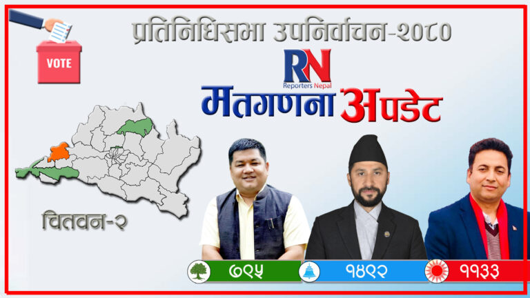ताजा मतपरीणाम अनुसार रास्वपाका उम्मेद्‍वार लामिछानेले १४ सय ९२ मत प्राप्त गरेका छन्। उनलाई पछ्याइरहेका एमालेका उम्मेद्‍वार न्यौपानेले ११ सय ३३ मत प्राप्त गरेका छन्।