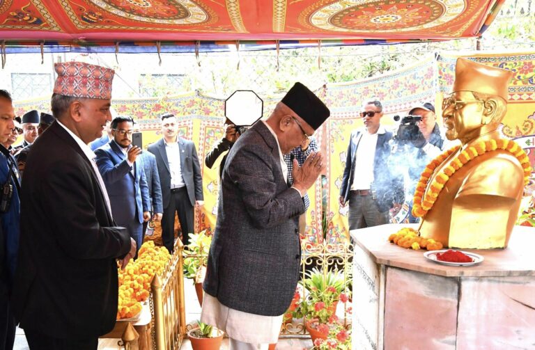 काठमाण्डौं, वैशाख १३ । नेकपा (एमाले) का प्रथम अध्यक्ष मनमोहन अधिकारीको २४ औं स्मृति दिवसको अवसरमा पार्टी अध्यक्ष केपी शर्मा ओलीले उनको शालिकमा माल्यार्पण गरेका छन् ।