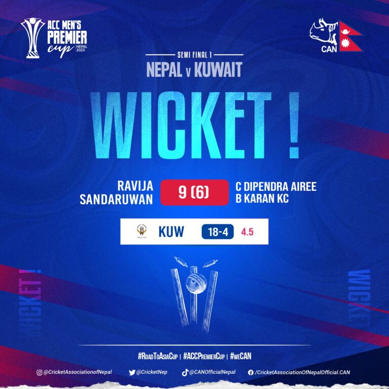 ताजा अवस्थामा कुवेत ५।१ ओभरमा चार विकेट गुमाएर १८ रन बनाएर खेलिरहेको छ ।