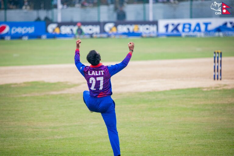 लगातार विकेट गुमाएसँगै संकटमा परिरहेको यूएईको नवौं विकेट पनि पतन भईसकेको छ । २७.२ ओभरमा यूएईका आसिफ खांन ४६ रन बनाएर आउट भएका थिए भने २७.३ ओभरमा ललित राजवंशीकै बलमा जहूर खान पनि आउट भएका छन् ।