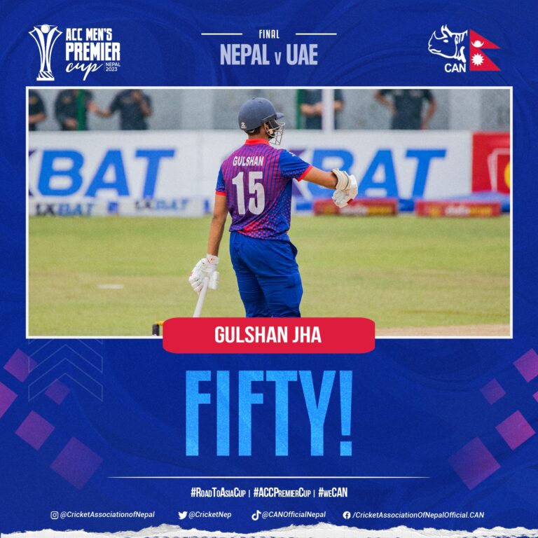 काठमाडौं,१९ वैशाख । एसीसी प्रिमियर कपको फाइनलमा यूएईविरुद्ध शानदार जित हाँसिल गर्दै नेपाल एसिया कपमा छनोट भएको छ ।
