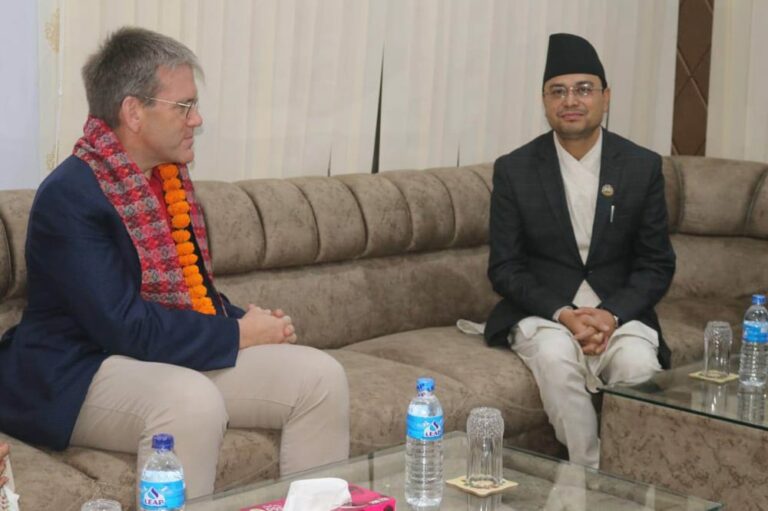 काठमाडौं, २० बैशाख । नेपालका लागि अमेरीकी राजदूत डिन आर थम्पसन र सुदूरपश्चिम प्रदेश सरकारका भौतिक पूर्वाधार विकासमन्त्री प्रकाश देउवाबीच भेटवार्ता भएको छ।