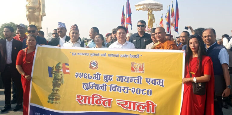 लुम्बिनी, २२ वैशाख । २५६७औँ बुद्धजयन्तीको अवसरमा बुद्ध जन्मस्थल लुम्बिनी झकिझकाउ भएको छ । बुद्ध जयन्तीका अवसरमा आज बिहान लुम्बिनीमा बृहत् शान्ति र्याली निकालिएको छ ।