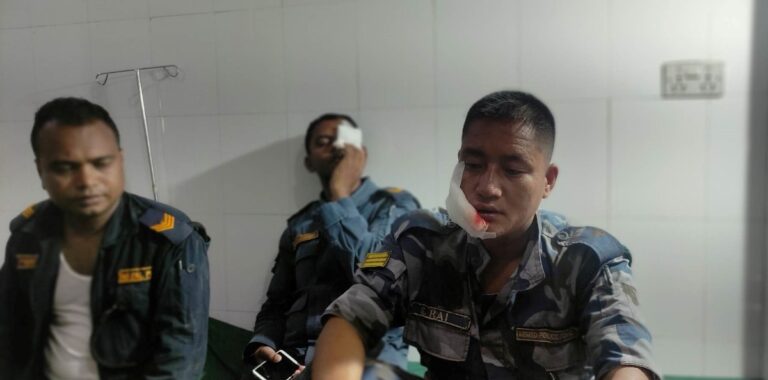 प्रहरी र प्रर्दशनकारीबीच करिब डेढ घण्टा भएको झडपमा १० प्रहरी घाइते भएका छन् । करिब ३ सय मिटर टाडादेखि राँको बालेर आएका आन्दोलनकारीहरूलाई दमकको मुख्य गणतन्त्र चोकमा प्रहरीले रोकेर राँको निभाउन खोजेपछि दुई पक्षबिच झडप सुरु भएको थियो । झडपले उग्र रूप लिएपछि प्रहरीले बल प्रयोग गरेको बताइन्छ ।