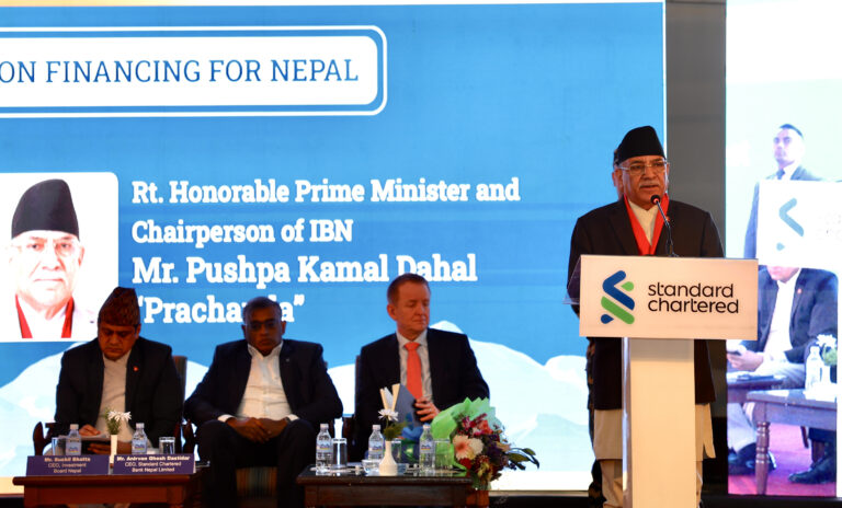 लगानी बोर्डको कार्यालय र स्ट्यान्डर्ड चार्टर्ड बैंक नेपालको संयुक्त आयोजनामा काठमाडौँमा सुरु भएको सम्मेलनको प्रधानमन्त्री पुष्पकमल दाहाल ‘प्रचण्ड’ले उद्घाटन गरे ।