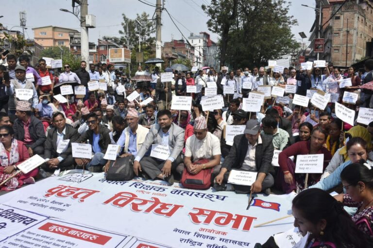 काठमाडौं, २९ बैशाख । नेपाल शिक्षक महासंघ राष्ट्रिय समितिले सरकारसँग विभिन्न माग राख्दै ‘वृहत विरोध सभा’ आयोजना गरेको छ।