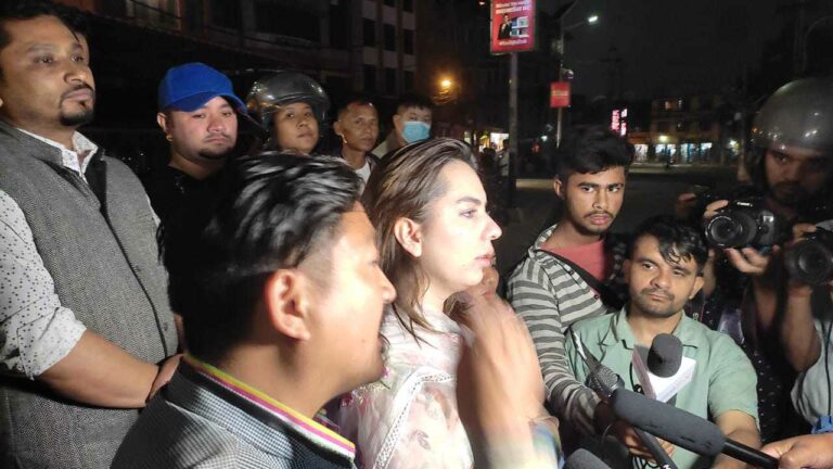 नागरिक उन्मुक्तिकी केन्द्रीय सदस्य तथा महिला विभाग प्रमुख एलिजा गौतम आँफै माइतीघर मण्डलामा आयोजित विरोध प्रदर्शनमा सहभागी भएकी हुन् ।