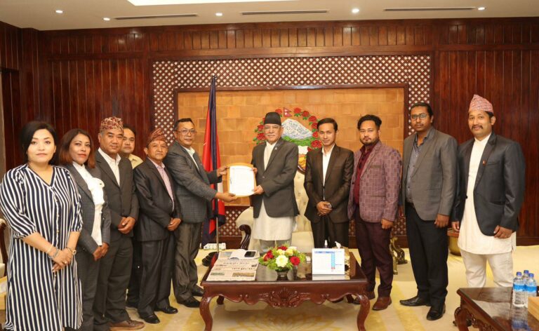 काठमाडौं, जेठ ३ । राष्ट्रिय फोटो पत्रकार समूह, नेपाल (एनएफपीजे) ले प्रधानमन्त्री पुष्पकमल दाहाल ‘प्रचण्ड’लाई ज्ञापन पत्र बुझाएको छ । संस्थाका अध्यक्ष प्रदीपराज वन्तको नेतृत्वको टोलीले आज बिहान प्रधानमन्त्रीलाई भेटी ७ बुँदे ज्ञापन पत्र बुझाएको हो ।