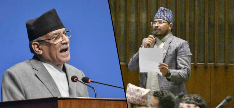 सांसद शाहीले प्रश्न गरे, ‘पेन्सन र प्रहरीको तलब दिन नसक्ने स्थिति चार महिनादेखि देखापरेको छ । तपाईंको समाधान के छ रु र पूर्वमाओवादी लडाकुलाई राज्यकोषबाट वितरण भएको रकममा व्यापक भ्रष्टाचार भएको आरोप छ । तपाईं संसद्को विशेष समिति गठन गरेर यसको छानबिन गर्न तयार हुनुहुन्छ ?‘