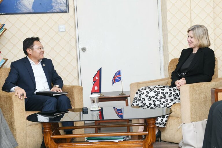 काठमाडौं,५ जेठ । संस्कृति, पर्यटन तथा नागरिक उड्डयनमन्त्री सुदन किराती र नेपालका लागि वेलायती राजदूत निकोला पोलिटबीच भेटवार्ता भएको छ ।
