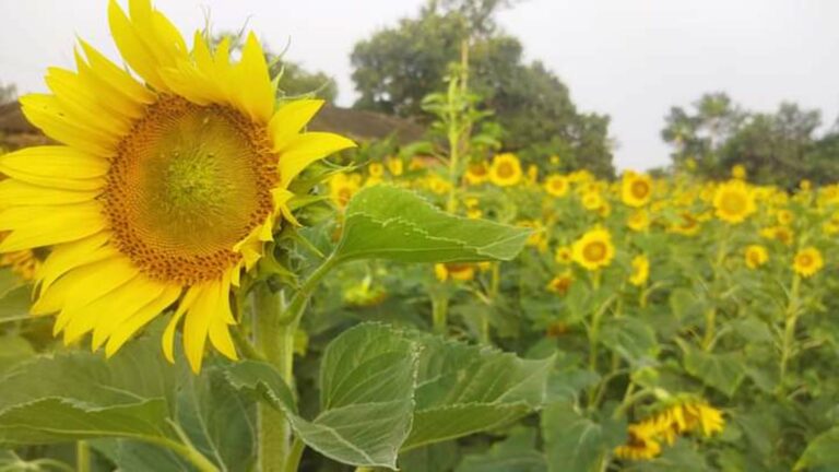 महोत्तरी जिल्लाको बर्दिबास नगरपालिका–९ पशुपति नगरमा एक किसानले गरेको सूर्यमुखीको खेती । तस्वीर : सञ्जीतकुमार मण्डल /रासस
