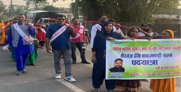 पर्सा, जेठ ६ । पर्साको सिर्सिया नदीलाई प्रदूषणमुक्त बनाउन चुरे तथा वनजङ्गल संरक्षण अभियानले वीरगञ्जदेखि काठमाडौँसम्मको पदयात्रा सुरु गरेको छ । सिर्सिया नदीलाई प्रदूषणमुक्त बनाउन सरकारलाई दबाब दिने उद्देश्यले अभियानका संयोजक सुनिल यादवको नेतृत्वमा अभियान्ता पैदलयात्रा सुरु गरेका हुन् । प्रदूषित सिर्सिया नदीको पानी बोकेर पैदलयात्रामा निस्केको अभियनता सरोजराय यादवले बताए।