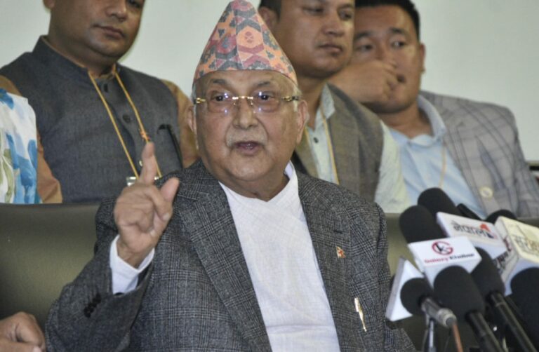 शनिबार नयाँ बानेश्वरस्थित संघिय सधनको भवनमा बसेको एमाले संसदिय दलको बैठकमा पार्टी अध्यक्ष एवं दलका नेता केपी शर्मा आलीले सरकारले ल्याएको नीति तथा कार्यक्रम संसद्बाट पारित हुन नदिने चेतावनी दिए ।