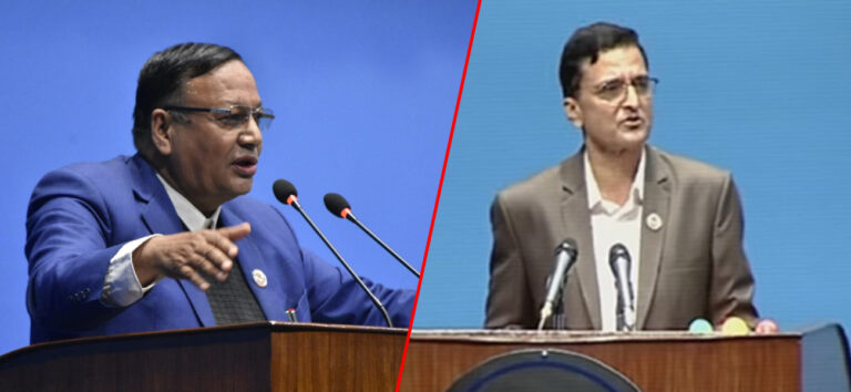 काठमाडौं, ८ जेठ । प्रतिनिधिसभाको बैठकमा नेकपा(एमाले) र नेकपा (माओवादी केन्द्र)का सांसद्बीच ‘जनयुद्ध’ शब्दका कारण बाझाबाझ परेको छ।