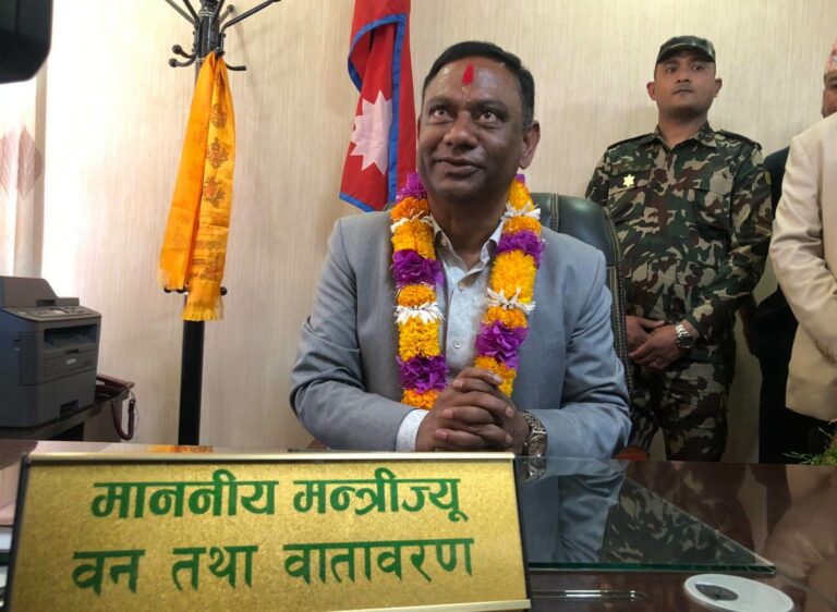 पदभार ग्रहणपछि नवनियुक्त वनमन्त्री महतोले भने–काठको आयात रोकी निर्यात गर्न सकिन्छ