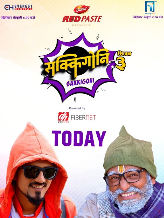 काठमाडौं, जेठ १२ । लोकप्रिय टेलिभिजन हास्यश्रृंखला ‘सक्किगोनि’ तेस्रो सिजनको प्रसारण आज विहीवारदेखि शुरु भएको छ । इएच डिजिटलमा सार्वजनिक भएको टिजर कार्यक्रममार्फत प्रसारण गर्ने मिति तय भएअनुरुप विहिवार साँझ ८ बजे हिमालय टेलिभिजनमा प्रशारण भए लगत्तै बेलुका ९ बजे इएच डिजिटलमा प्रशारण शुरु भएको हो ।