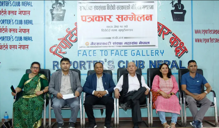 काठमाडौं, १२ जेठ । गैरसरकारी संस्था महासंघले सरकारले गैरसरकारी संस्थाहरूलाई अंकुश लगाएको आपत्ति जनाएको छ । आज (शुक्रबार) महासंघले सरकारले गैरसरकारी संस्थाहरूमाथि अंकुश लगाएको भन्दै पत्रकार सम्मेलनको आयोजना गरेको हो।