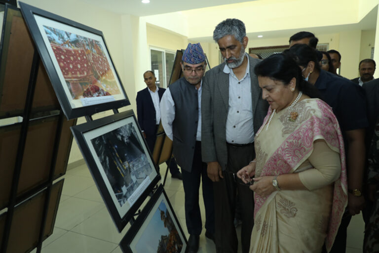 काठमाडौँ, १४ जेठ । पूर्वराष्ट्रपति राष्ट्रपति विद्यादेवी भण्डारी राष्ट्रिय समाचार समितिले गणतन्त्र दिवस २०८० का अवसरमा गरेको तस्बिर प्रदर्शनीको आइतबार अवलोकन गर्दै । तस्बिर: रत्न श्रेष्ठ / रासस