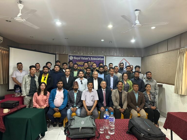 काठमाडौं, १४ जेठ । नेपाल भ्यालुयर्स एसोसिएसनको आयोजनामा फिक्स्ड एसेट भेलुएसन ट्रेनिङ सम्पन्न भएको छ । काठमाडौंको युनियन हाउसमा जेठ १२ गतेदेखि १४ गतेसम्म ३ दिन सञ्चालन भएको तालिममा देशभर आफ्नो कार्यक्षेत्र बनाई काम गरेका २४ जना मूल्याङ्कनकर्ताहरु सहभागी भएका थिए ।