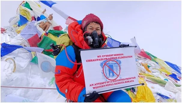 काठमाडौं,१६ जेठ । साइपाल गाउँपालिका–४ धुलीकी सङ्गीता रोकाया ‘छाउपडी प्रथा अन्त्य’को सन्देशसहित सर्वोच्च शिखर सगरमाथाको चुचुरोमा पुग्ने पहिलो बझाङी हुन्।