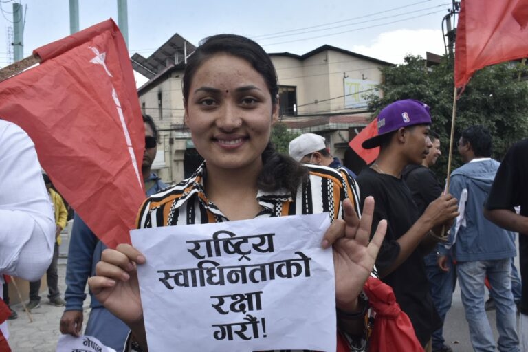 काठमाडौं, २० जेठ । नेपाल कम्युनिष्ट पार्टी (नेकपा) निकट अनेरास्ववियु (क्रान्तिकारी) ले भारतले नेपाली भू–भाग समावेश गरी ‘अखण्ड भारत’ को नक्सा सार्वजनिक गरेको भन्दै विरोध प्रदर्शन गरेको छ । अनेरास्ववियु (क्रान्तिकारी) का नेता तथा विद्यार्थीहरुले ‘अखण्ड भारत नो, ग्रेटर नेपाल एस, सबै खाले वैदेशिक हस्तक्षेप बन्द गर, राष्ट्रिय स्वाधीनताको रक्षा गरौं’ लगायतका नारा लेखिएको प्लेकार्ड बोकेर प्रदर्शन गरेका थिए ।