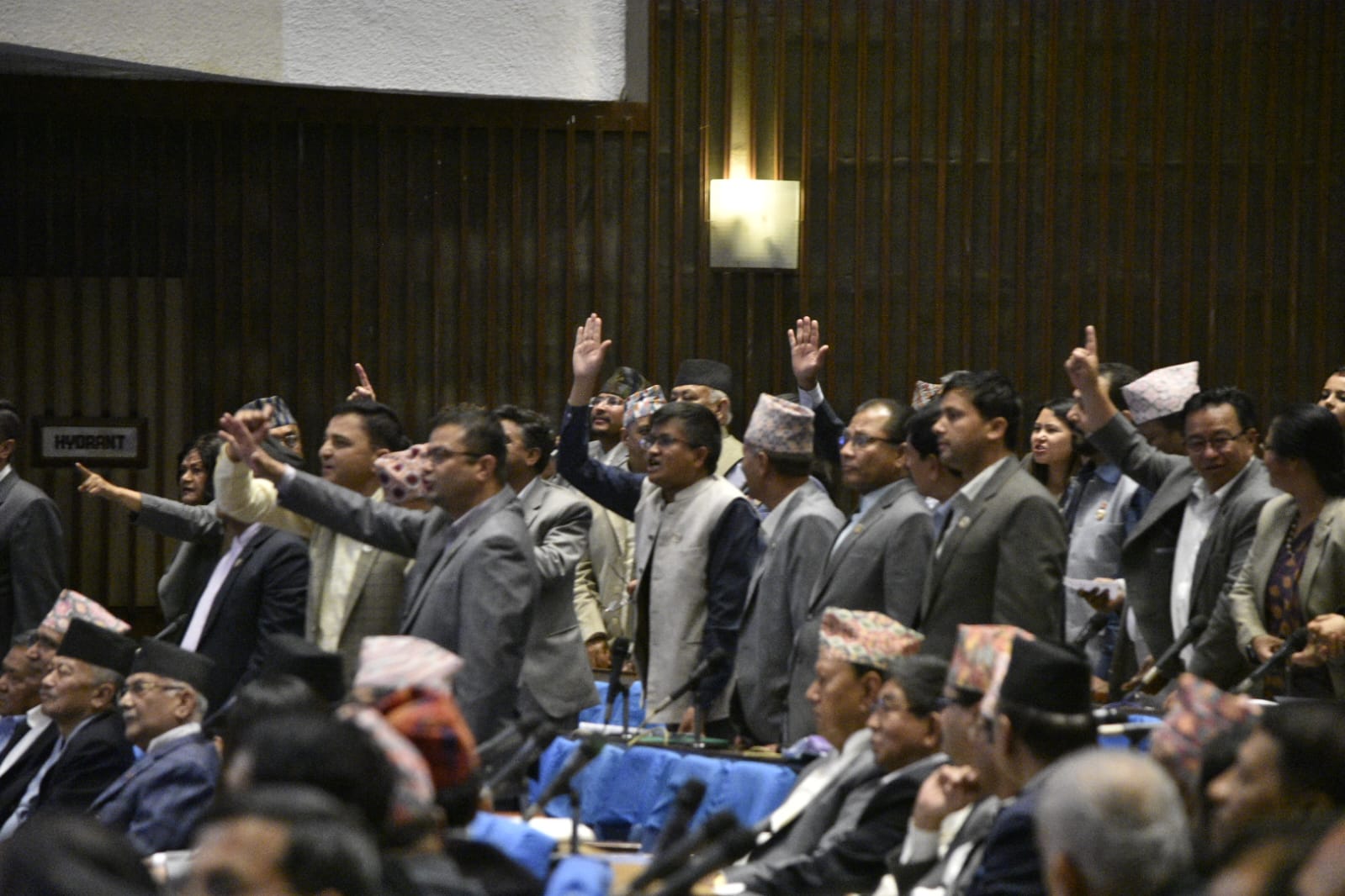 संसद् बैठकमा सत्ता पक्ष र प्रतिपक्षका सांसदहरु होहोल्लमा उत्रिए, प्रधानमन्त्री भैंसी चढेर आएको भनेपछि माहोल तातियो (फोटोफिचर)