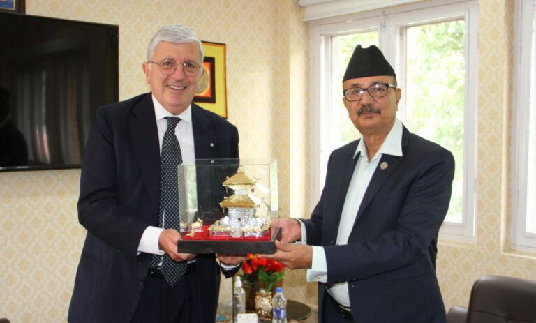 काठमाडौं, २२ जेठ । उद्योग, वाणिज्य तथा आपूर्ति मन्त्री रमेश रिजालसँग इटालीका गैर–आवासीय महामहिम राजदूत भिन्सेन्जो डि लुकाले शिष्टाचार भेटवार्ता गरेका छन् । सोमबार मन्त्रालयमा भएको शिष्टाचार भेटवार्तामा द्विपक्षीय सम्बन्ध, सहयोग तथा व्यापार र लगानी लगायत विषयमा छलफल भएको थियो ।