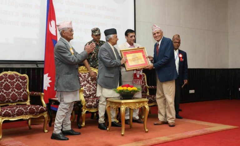 काठमाडौं,२२ जेठ । युगकवि सिद्धिचरण श्रेष्ठको साहित्य सिर्जनालाई अनुसरण गरी नेपाली साहित्यको विकासका लागि उल्लेख्य योगदान गरेबापत युगकवि सिद्धिचरण प्रतिष्ठानले ‘युगकवि सिद्धिचरण पुरस्कार २०८०’ प्रा डा जयराज आचार्यलाई प्रदान गरिएको छ ।