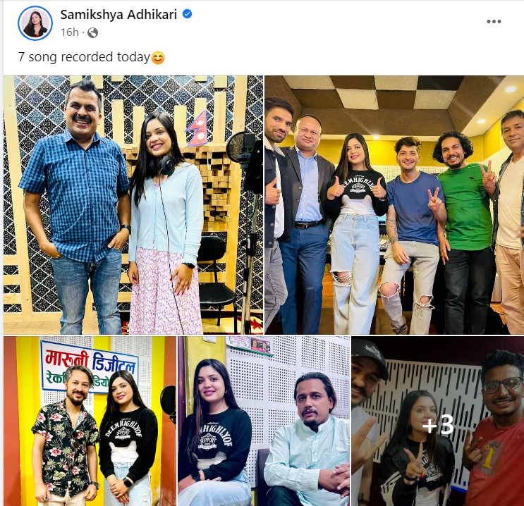 काठमाडौं, २३ जेठ । गायिका समिक्षा अधिकारीको दिनाचार्य व्यस्त बनेको छ। पछिल्लो समय एकपछि अर्को गरेर हिट गीत पस्किएकी गायिका अधिकारीले हिजो (सोमबार) एकैदिन सात वटा गीत रेकर्ड गराएकी छिन् ।