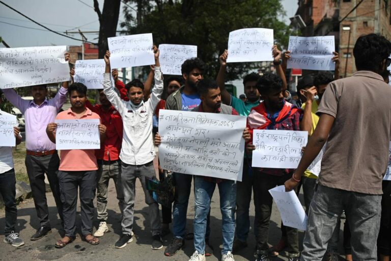काठमाडौं,२४ जेठ । राष्ट्रपति रामचन्द्र पौडेलद्धारा प्रमाणीकरण भएको नागरिकता विधेयक यथास्थितीमा राख्न सर्वोच्च अदालतले दिएको अन्तरिम आदेशविरुद्ध नागरिकताविहीनहरुले प्रदर्शन गरेका छन् ।