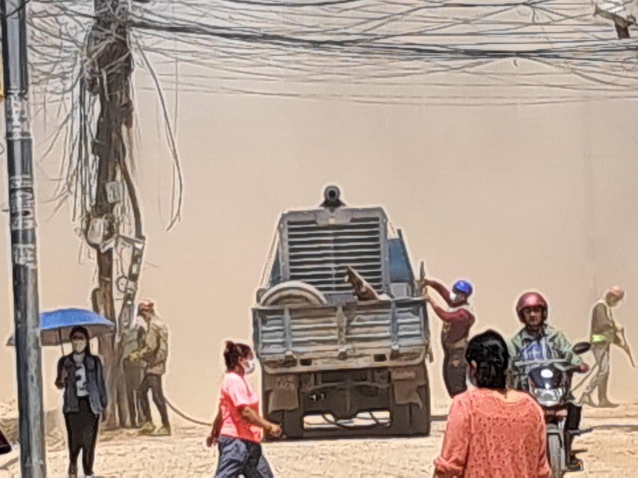 कालोपत्रे गर्नुअघि सडक बढार्दै सफा गर्ने क्रममा धुलो उडाउँदा आसपासका क्षेत्र अस्तव्यस्त देखिएको छ भने सडकमा हिडेका बटुवा र सवारी चालकलाई पनि उडेको धुलोले सेताम्य बनाईरहेको स्थानीयले गुनासो गरेका छन् ।