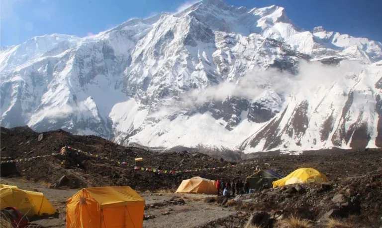 अन्नपूर्ण आधार शिविर अन्य आधार शिविरभन्दा समथर भागमा रहेको छ । वरिपरि अन्नपूर्ण, अन्नपूर्ण फ्रेन्क, तिलिचो पिक, वराहशिखर र नीलगिरि साउथ हिमालबाट घेरिएर बनेको आधार शिविरको उपत्यका मनमोहक छ । हिमालको फेदीमा रहेको विशाल पञ्चकुण्ड ताल यहाँको थप आकर्षण हो । करिब २० हजार बर्गमिटर क्षेत्रफलमा फैलिएको पञ्चकुण्ड तालमा आकासे नीलो रंगको पानीको दृष्यले पर्यटकहरुलाई लोभ्याउने गर्छ ।