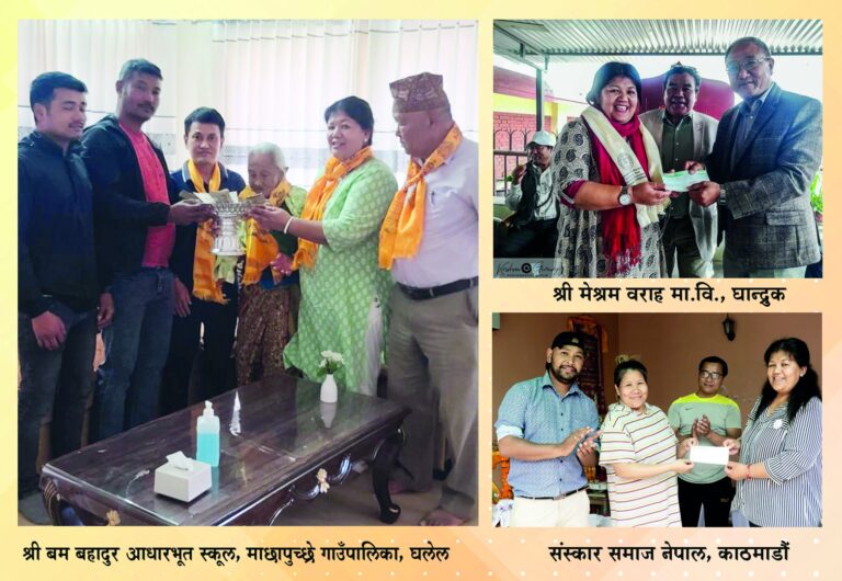 आफ्नी स्वर्गिय आमा चिसकुमारी गुरुङको नाममा संस्कार समाज नेपाल मार्फत ५ लाखको अक्षयकोष स्थापना गरेकी गुरुङले गत वर्ष आफूले माध्यमिक शिक्षा लिएको विद्यालय श्री मेश्रम बराह मा.वि., घान्द्रुकलाई आफ्ना पितृहरुको नाममा ५ लाख अक्षयकोष प्रदान गर्नु गरेकी थिइन भने आइतबार आफ्नी ममतामयी सासूआमा शिरकुमारी गुरुङको नाममा आफ्ना श्रीमान् बुद्धिप्रसाद गुरुङले अध्ययन गरेको माछापुच्छ्रे गाउँपालिका घलेलगाउँमा रहेको विद्यालय श्री बम बहादुर आधारभूत स्कूललाई अक्षयकोषका लागि रु. ५ लाख प्रदान गरेकी हुन ।