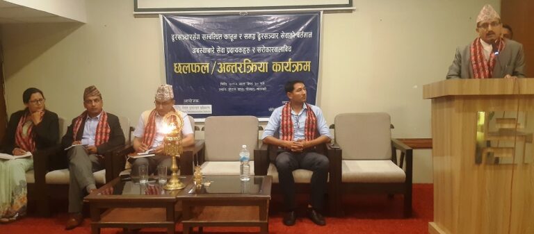 दूरसञ्चार सेवा सम्बन्धित कानुन र समग्र दूरसञ्चार सेवाको वर्तमान अवस्थाबारे सेवा प्रदायक र सरोकारवालाबीच गरिएको छलफलमा वक्ताहरूले बनेका कानुनको प्रभावकारी कार्यान्वयन एवम् नियमनसँगै सेवा प्रदायक पनि सेवाको गुणस्तरीयता अभिवृद्धिमा लाग्नुपर्ने बताए ।