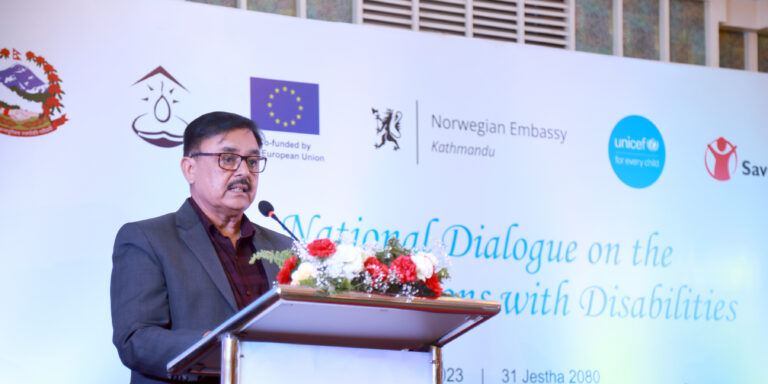 महिला, बालबालिका तथा ज्येष्ठ नागरिक मन्त्रालय, राष्ट्रिय अपाङ्गता कोष, नेपालका लागि युरोपेली सङ्घको प्रतिनिधिमण्डल, नेपालस्थित नर्वेजियन दूतावास, सेभ द चिल्ड्रेनको सहकार्यमा युनिसेफले आज (बुधबार) यहाँ आयोजना गरेको ‘अपाङ्गता भएका व्यक्तिको अधिकारसम्बन्धी राष्ट्रिय सम्वाद’मा मन्त्री आचार्यले अपाङ्गता भएका व्यक्तिको सम्मान, संरक्षण र प्रवर्द्धन सुनिश्चित गर्न सरकारले विभिन्न कानुनी व्यवस्था गरेको जानकारी दिए । “अन्तर्राष्ट्रिय महासन्धिलगायत कानुनी व्यवस्थालाई व्यवहारिक रुपान्तरण गर्नको लागि मन्त्रालय प्रतिबद्ध छ”, उनले भने ।
