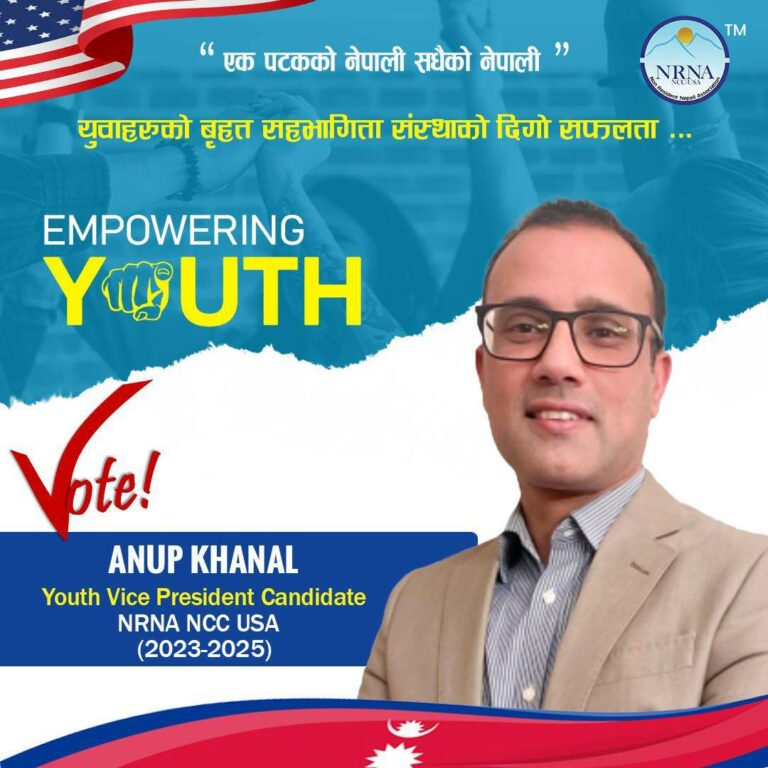 काठमाडौं, २ असार । गैरआवासीय नेपाली संघ(एनआरएनए) अमेरिकाको आगामी कार्यकालका लागि अनुप खनालले उपाध्यक्षमा उम्मेदवारी घोषणा गरेका छन्।