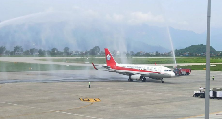 सिचुवान एयरलायन्सको एयरबस ए–३१९ जहाज बुधबार बिहान ९ बजार ९ मिनेटमा पोखरा अन्तर्राष्ट्रिय विमानस्थलमा अवतरण गरेको छ । २ हजार किलोमिटरको दुरी तय गरेको उक्त जहाज काठमाडौँको आकाश हुँदै पोखरा पुगेको हो । करिव एक घण्टा पोखरा विमानस्थलमा होल्ड हुने उक्त जहाज आजै काठमाडौं हुँदै चीन फर्किनेछ ।