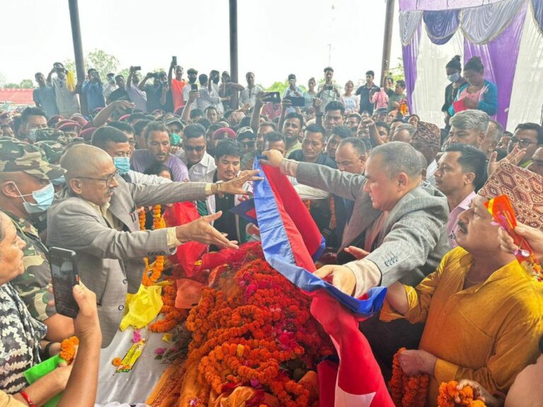 काठमाडौं, ६ असार । दुर्घटनामा परेर निधन भएका सुदूरपश्चिम प्रदेश सरकारका आन्तरिक मामिला तथा कानूनमन्त्री पृथ्वीबहादुर सिंहको पार्थिव शरीरलाई आज(बुधबार) श्रद्धाञ्जलीका लागि धनगढीमा राखिएको छ।