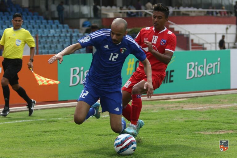 काठमाडौं,६ असार । भारतमा जारी १४औं साफ च्याम्पियनसिप अन्तर्गत पहिलो खेलमा कुवेतसँग प्रतिस्पर्धा गरिरहेको नेपाल पहिलो हाफमा २-० ले पछाडि परेको छ ।