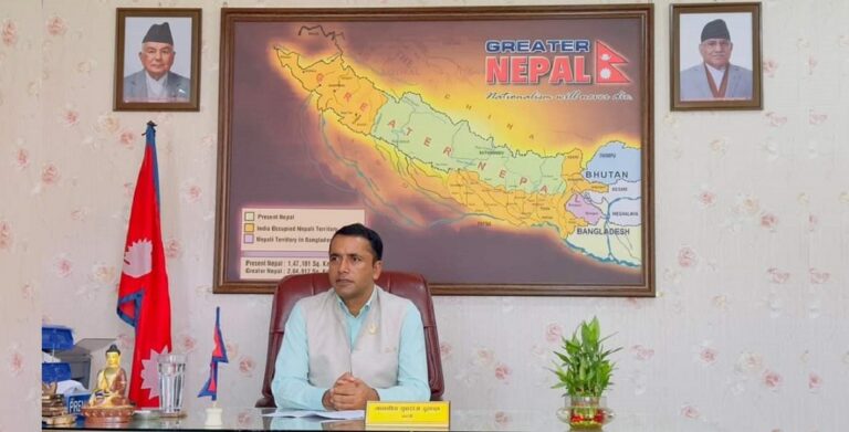 काठमाडौं,७ असार । बागमती प्रदेशका भौतिक पूर्वाधार विकासमन्त्री युवराज दुलालले आफ्नो कार्यकक्षमा ग्रेटर नेपालको नक्सा राखेका छन् ।