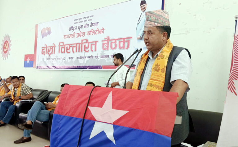 राष्ट्रिय युवा संघ नेपाल बागमती प्रदेश कमिटीको दोस्रो बैठकलाई शुक्रबार सम्बोधन गर्दै उनले वर्तमान गठबन्धनको सरकारले प्रदेश तथा संघीय सरकारमा ‘काले काले मिलेर खाउँ भाले’को नीति लिएर चरम भ्रष्टाचार, अनियमितता र कुशासन बढेको दावी गरे।