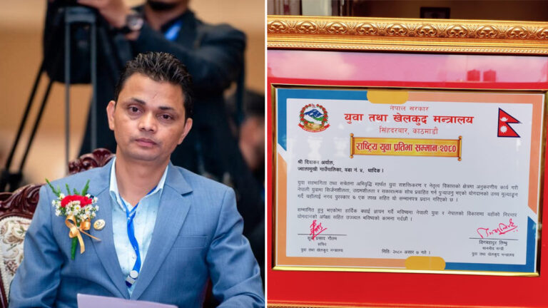 ग्लोबल युथ पार्लियामेन्टका अध्यक्ष अर्याललाई राष्ट्रिय युवा प्रतिभा सम्मान पुरस्कार