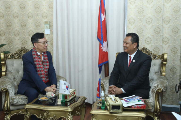 काठमाडौँ, १२ असार । सङ्घीय मामिला तथा सामान्य प्रशासनमन्त्री अमनलाल मोदीसँग नेपालका लागि गणतन्त्र कोरियाका नवनियुक्त राजदूत पार्क टियोङ्गले शिष्टाचार भेट गरेका छन् ।