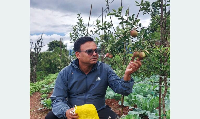 ढोरपाटन, १५ असार । बागलुङको निसीखोला गाउँपालिका–२ अर्नाकोटका दुर्गाबहादुर ओलीले अघिल्लो वर्ष पोखराबाट इटिलियन गाला फुजी जातको २२ वटा स्याउका बिरुवा लिएर लगाए । परीक्षणका रुपमा लगाएको स्याउले एकै वर्षमा फल दिन थालेपछि ओलीले यस वर्ष थप २७ वटा बिरुवा लगाएका छन् । सुरुमा लगाएका २२ बिरुवामध्ये दुईवटा मरे अहिले २० वटा बोटमा स्याउ फलेका छन् । स्याउले सानै बोटमा फल दिन थालेपछि गाउँका अन्य कृषक पनि हर्षित भएका छन् । दुर्गाबहादुरले स्याउका बिरुवा लगाएपछि अर्नाकोटका अन्य १२ कृषकले पनि बिरुवा लिएर लगाए ।