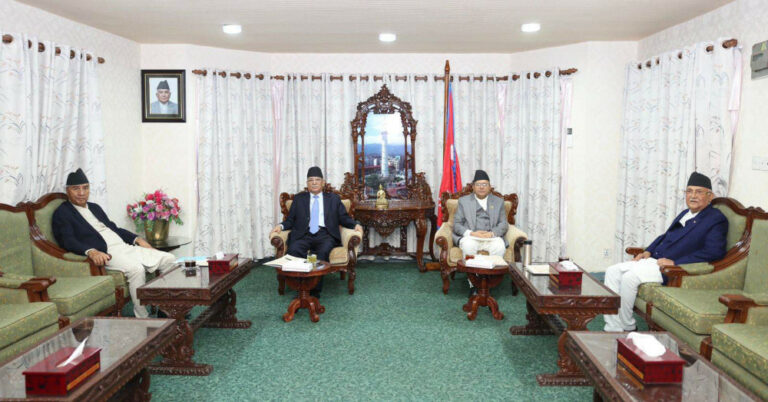काठमाडौं, असार १९ । सभामुख देवराज घिमिरेले प्रधानमन्त्री पुष्पकमल दाहाल ‘प्रचण्ड’सहित तीन दलका शीर्ष नेतासँग छलफल गर्दैछन्। संसदीय समितिका सभापति चयन र संसदलाई प्रभावकारी बनाउने विषयमा छलफल हुन लागेको हो ।