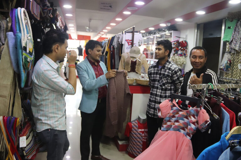 काठमाडौँ, १९ असार । ललितपुरको चापागाँउ दोबाटोमा “नेपाली मन, नेपाली पन, नेपालकै उत्पादन” भन्ने उद्देश्यले नेपाली घरेलु, हस्तकला कृषि तथा लघु उद्यमका सबै उत्पादन र सामाग्रीहरु एकै ठाउँमा बिक्री गर्न सञ्चालन गरेको उद्यमी घरमा रहेको सामान हेर्दै नागरिक ।