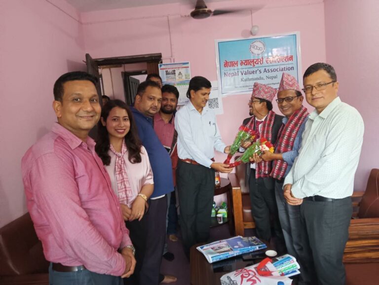 काठमाडौं, १९ असार । बंगलादेश सर्भे एण्ड भ्यालुयसन कम्पनी एण्ड इण्डिभिज्योल कन्सर्नस् एशोसिएशन (BSVCFICA) का महासचिव मोहम्मद अनुवर हुसेन र ईन्जिनियर अनउल हखको प्रतिनिधि मण्डलले नेपाल भ्यालुयर्स एशोसिएशन (NVA) को कार्यालय अवलोकन गरेका छन् ।