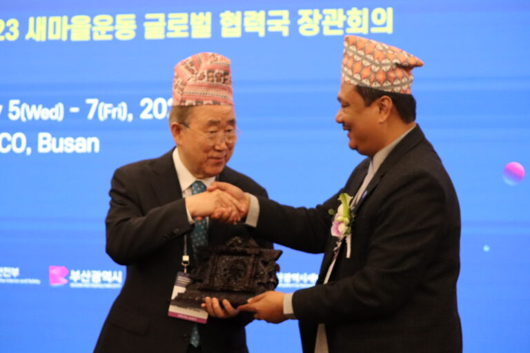 काठमाडौं, २० असार । संघीय मामिला तथा सामान्य प्रशासनमन्त्री अमन लाल मोदीले संयुक्त राष्ट्र संघका पूर्व महासचिव वानकी मुनलाई आँखी झ्यालसँगै नेपाली ढाका टोपी उपहार दिएका छन् । दक्षिण कोरियाको बुसान सहरमा जारी विश्वका विभिन्न देशका मन्त्रीहरु सहभागी भइरहेको मन्त्रीस्तरीय सम्मेलनमा प्रमुख वक्ताको रुपमा उपस्थित भएका पूर्व महासचिव वानकी मुनलाई ढाका टोपी लगाई मन्त्री मोदीले आँखी झ्याल उपहार दिएका हुन् ।