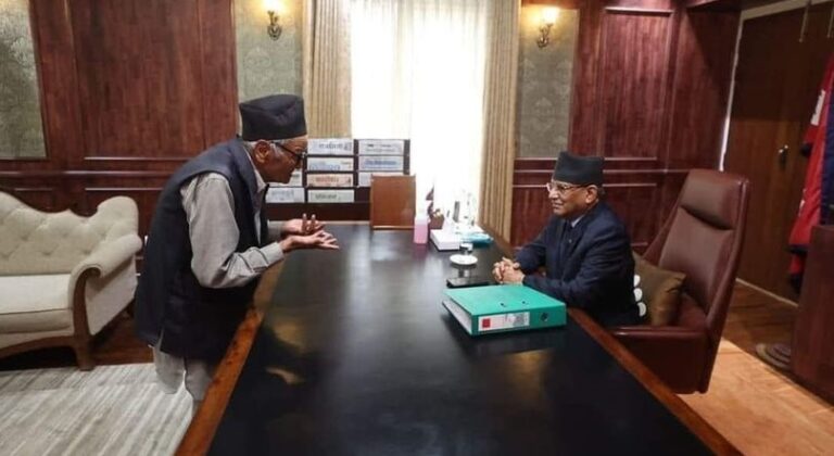 काठमाडौं, २१ असार । बैतडी दोगडाकेदार–६ का ८९ वर्षीय वीरसिंह भण्डारीले प्रधानमन्त्री पुष्पकमल दाहाल ‘प्रचण्ड’ सँग भेटवार्ता गरेका छन् । भेटवार्ताका क्रममा उनले व्यवस्था बदलिएपनि संस्कार पुरानै रहेको प्रधानमन्त्री प्रचण्डसँग गुनासो गरेका थिए ।